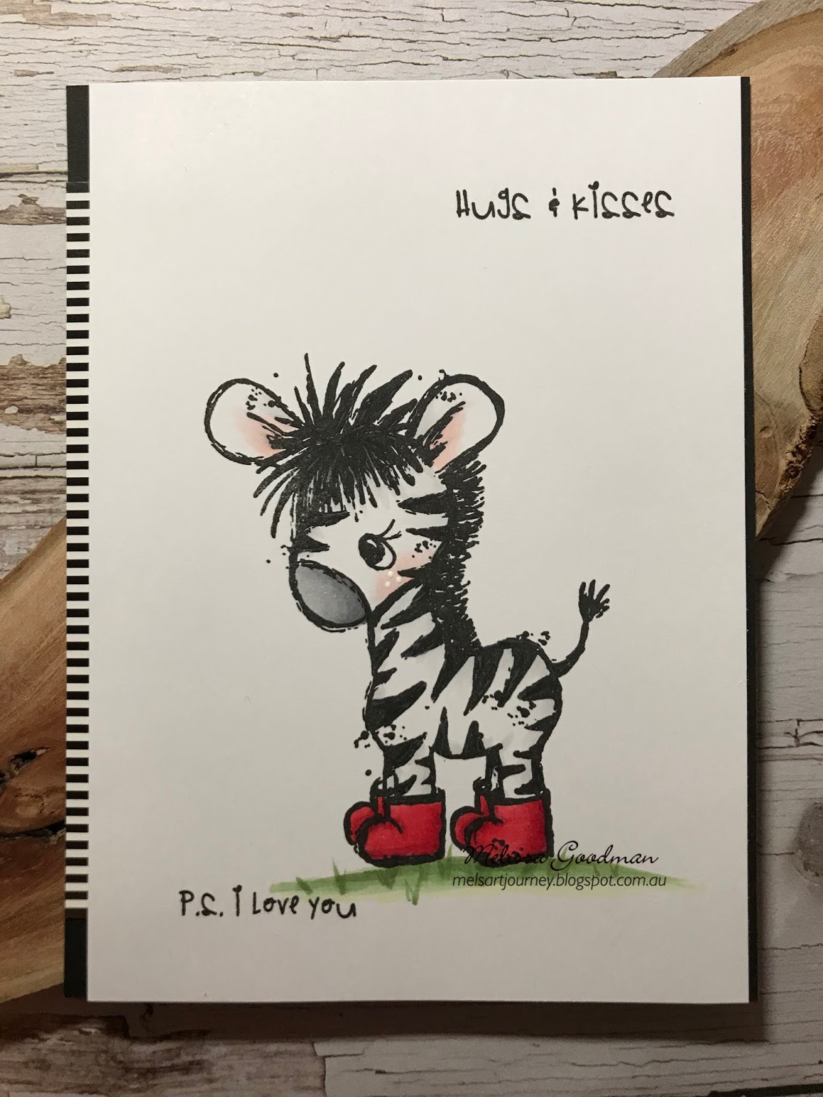 - Print image onto base card. Colour with copic markers. Apply Nuvo Shimmer Pen and Glossy accents to the juggling balls. Set aside. Allow to dry.